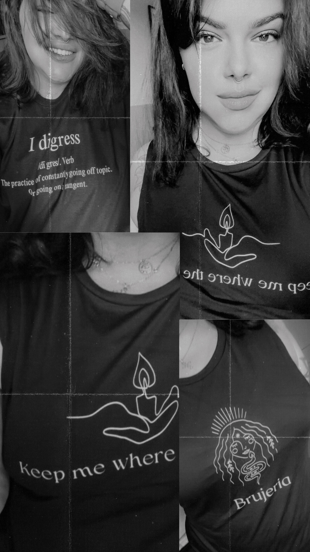 In this page you will find a little bit of me, everywhere. A lot of my merch is made to express a feeling or literally something I wanted to wear, and I could not find it anywhere else. Sooo, I designed it. I really hope you find a design that speaks to you. Thank you for stoping by.